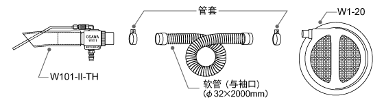 安装在20升桶上使用。 WONDER-GUN(气动吸尘枪)W101-II-TH:具有吸入或吹飞功能。适合除去深凹槽内的异物。 按照顾客的需求,管嘴的长度以及直度加工可更改。